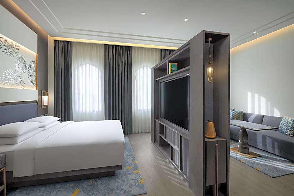The spacious suite provides air conditioning, a mini-bar, as well as a private bathroom featuring a bath and a shower. The suite features a tea and coffee maker, executive lounge access, a wardrobe, a safe deposit box and a flat-screen TV with cable channels. The unit offers 1 bed.